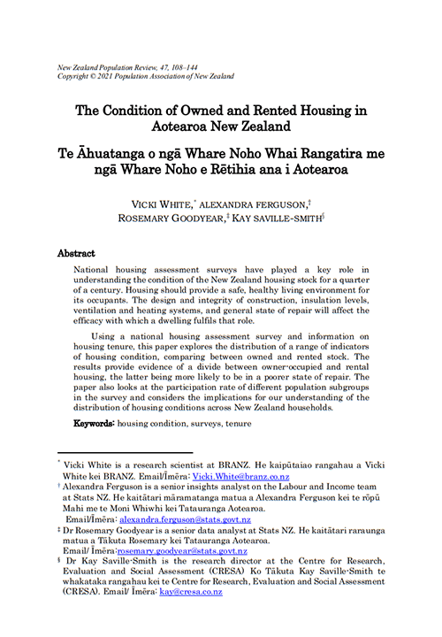 The Condition of Owned and Rented Housing in Aotearoa New Zealand